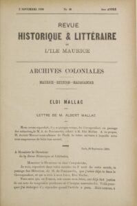 Et surtout, cette lettre étonnante de son demi-frère François «Albert» MALLAC, homme de lettres, qui prend sa défense pour rétablir sa réputation sur l’île Maurice. Albert MALLAC prend sa plume dans la Revue historique et littéraire de l’Île Maurice, en novembre 1890 :